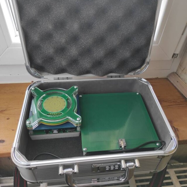 got to the USA in 2 weeks, item work great, good LED that show the audio input well. works on batteries and on aux power with a switch. very happy.
